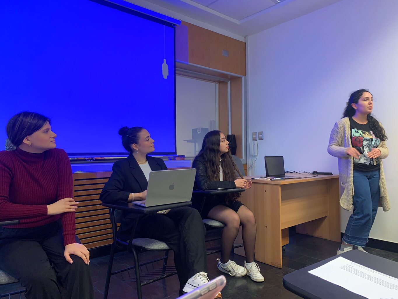 Esta actividad espera ser un primer hito profesionalizante pero también disciplinar. Por ello, cada equipo desarrolló su ponencia ante profesionales vinculados con la experiencia A+S. En este caso, participaron miembros del proyecto Colaborar UC y profesionales del Centro de Desarrollo Docente UC (CDDOC).